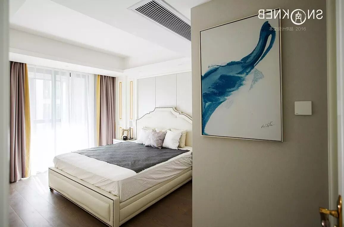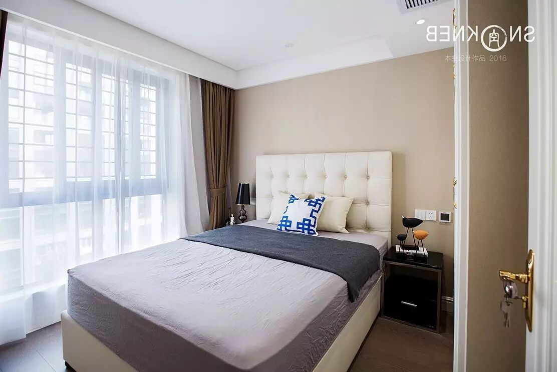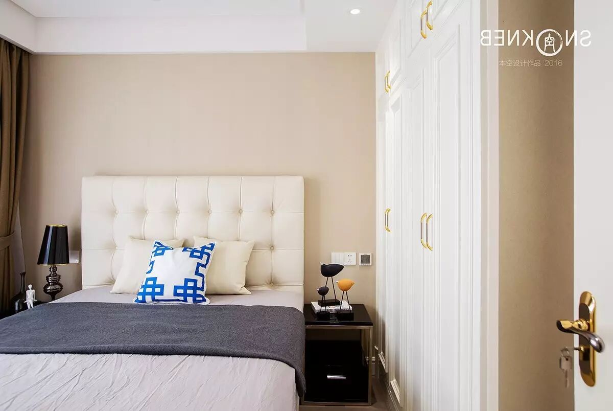 主臥室并沒(méi)有延續(xù)客廳的藍(lán),而是采用溫文爾雅的米灰色調(diào)與蜂蜜色進(jìn)行碰撞,整體不失輕奢感。屋主比較倡導(dǎo)臥室不要裝主燈,不會(huì)有壓抑感,而且可以增加睡眠感。