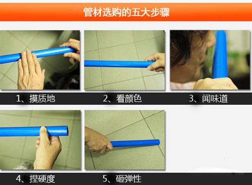 一用手感覺管材外表的的質(zhì)地是否光滑,看有無粗糙的雜質(zhì);二看各種管材的顏色是否與本來的顏色相符,有無變色掉色;三聞管材是否有異味怪味,尤其是PPR、PE、PVC管;四捏管材表面,看是否有容易變形;五看管材是否容易砸碎,檢查其回彈性。