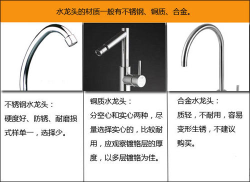 廚房龍頭的挑選:廚房水槽的龍頭最好選擇長柄,能轉動的龍頭,方便雙槽以上的水槽。家用龍頭一般有不銹鋼、銅質(zhì)和合金三種龍頭。